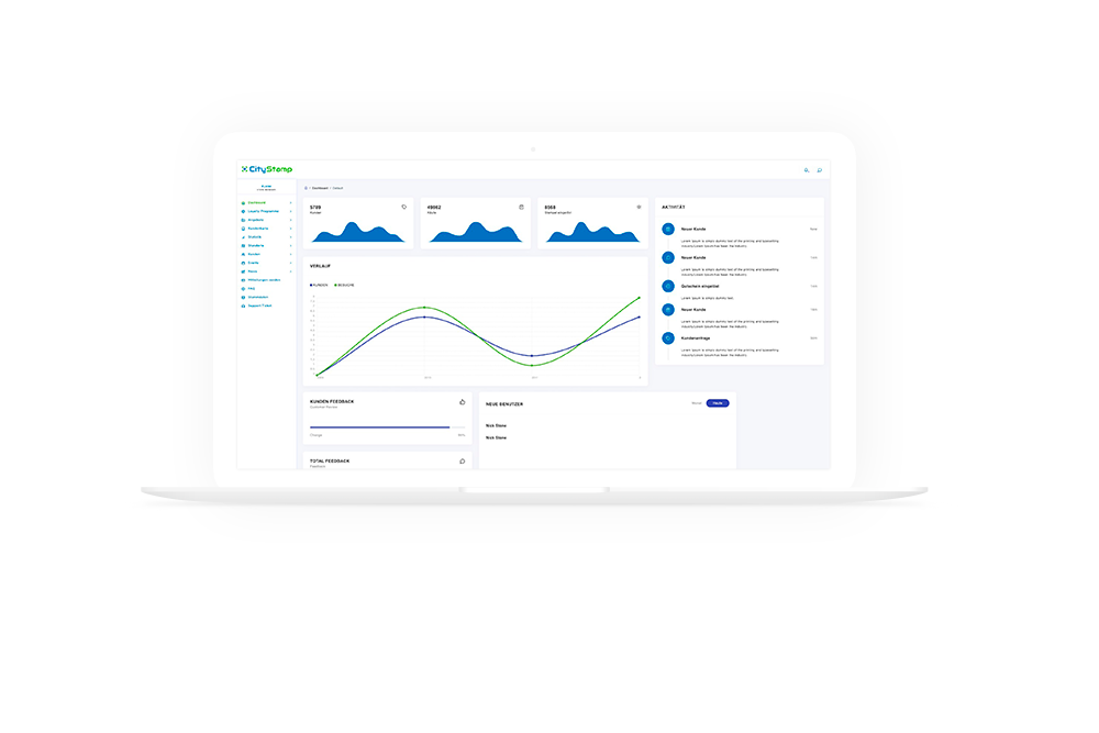 Dank umfassender Übersicht in unserem Partnerportal haben Sie völlige Transparenz und Kontrolle über den Erfolg Ihrer App. Die Statistiken rund um die gesammelten Stempel, eingelösten Gutscheine oder Angebote und Verwaltung Ihrer Treueprogramme haben Sie stets im Blick.